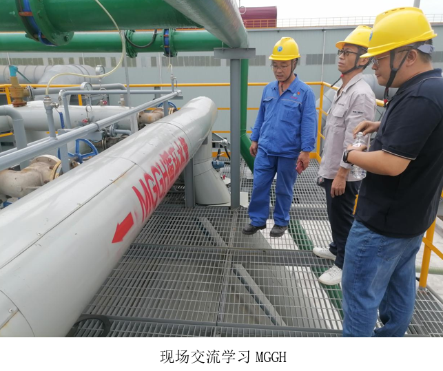 达州钢铁球团厂庞主任热情接待并带领交流团队深入现场,在学习过程中,西昌蓝鼎团队深入学习了 MGGH 的工作原理,并与达州钢铁厂的技术人员学习了湿电除尘的相关技术。达州钢铁厂的球团脱硫湿电除尘二次电流运行非常稳定,并且二次电流可控范围非常大,非常值得我们学习借鉴。